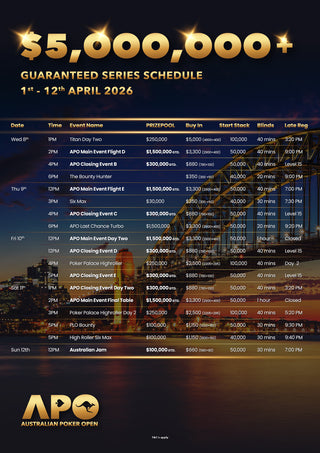 The Australian Poker Open returns April 1st 2026!